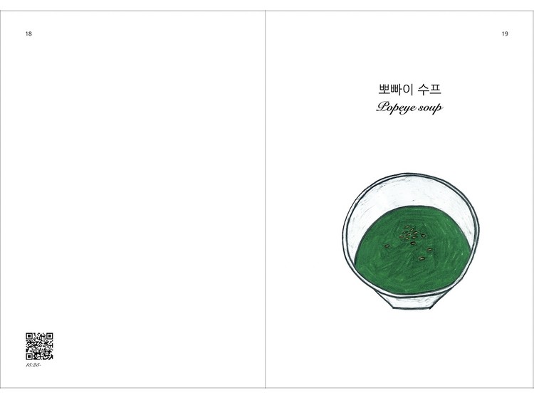 각 레시피 페이지에는 해당 요리를 찍은 유튜브 영상 QR코드도 넣어두었어요.